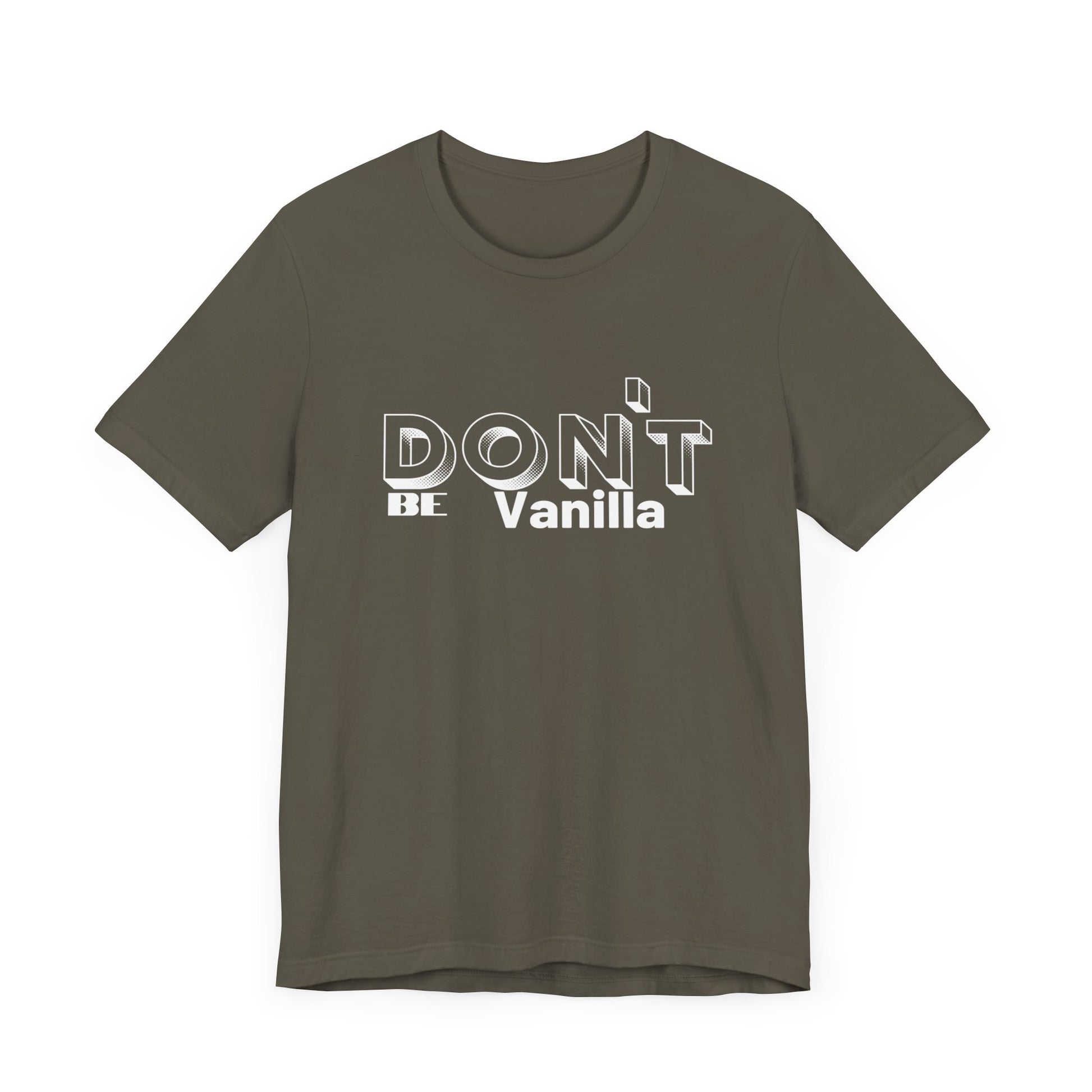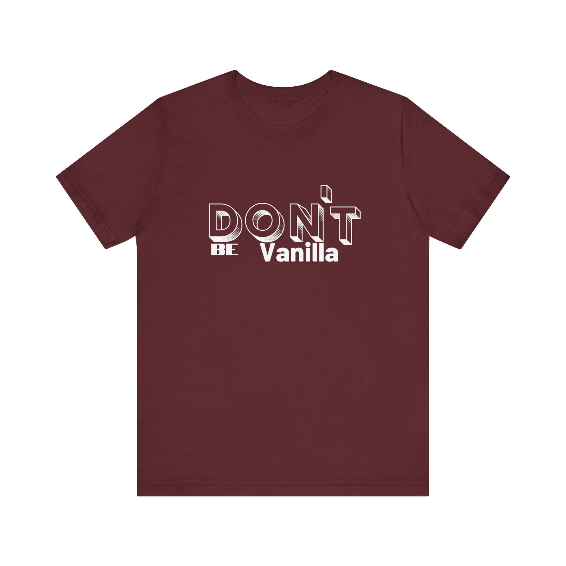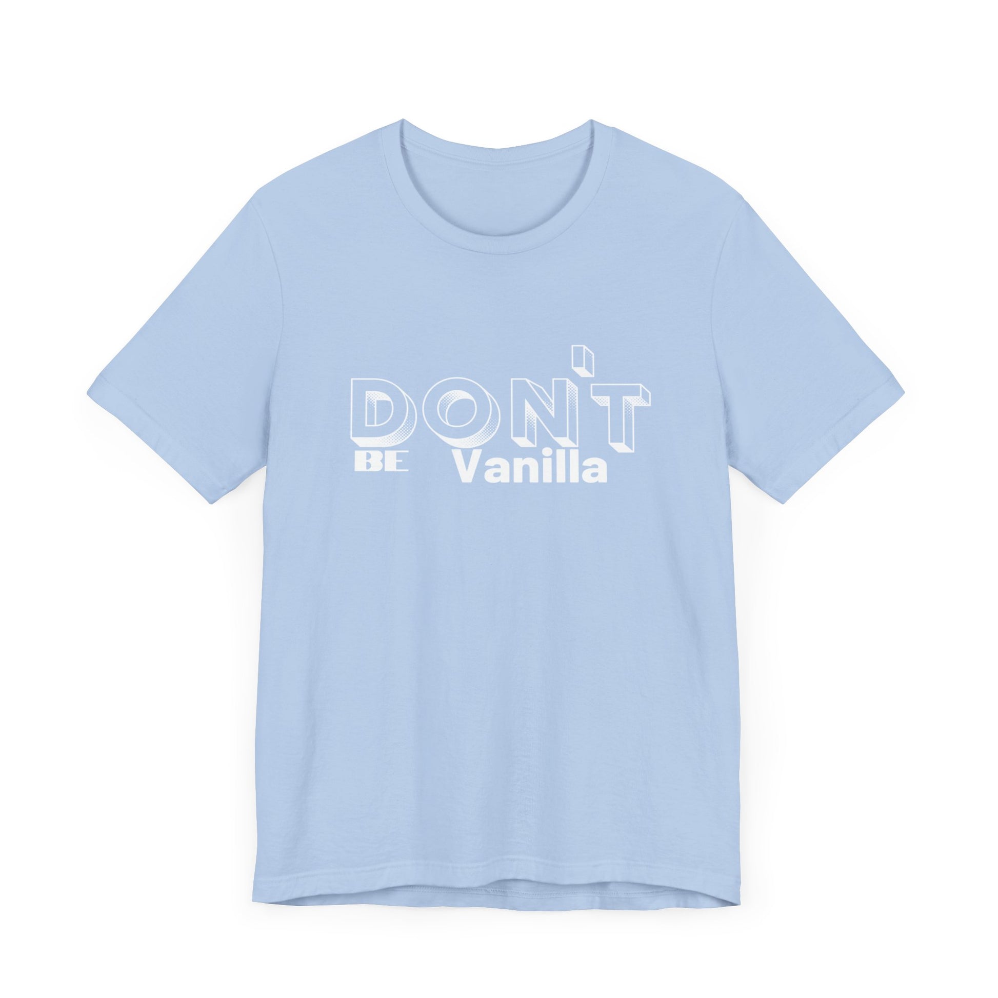 Embrace your individuality with our "Don't be Vanilla" white tee. Let your true self shine with this unique and empowering shirt. Made for those who want to stand out in a world of conformity. Unleash your confidence and be unapologetically YOU.