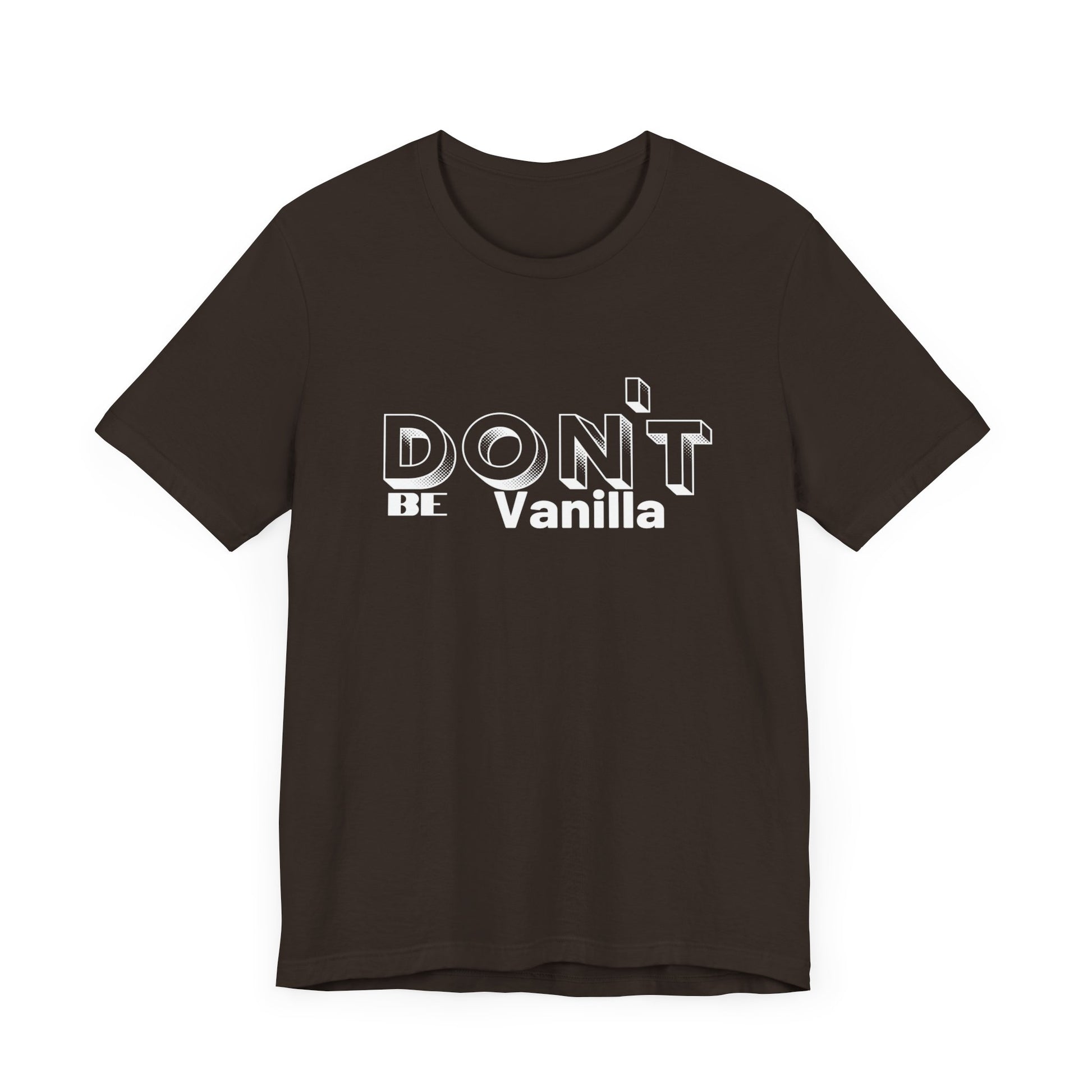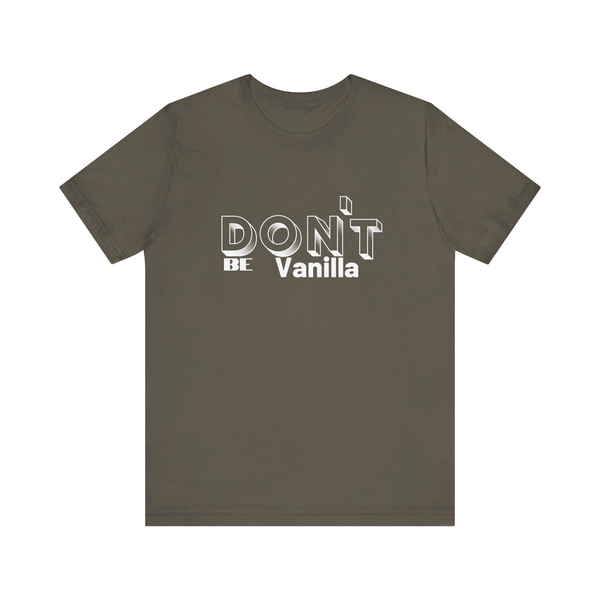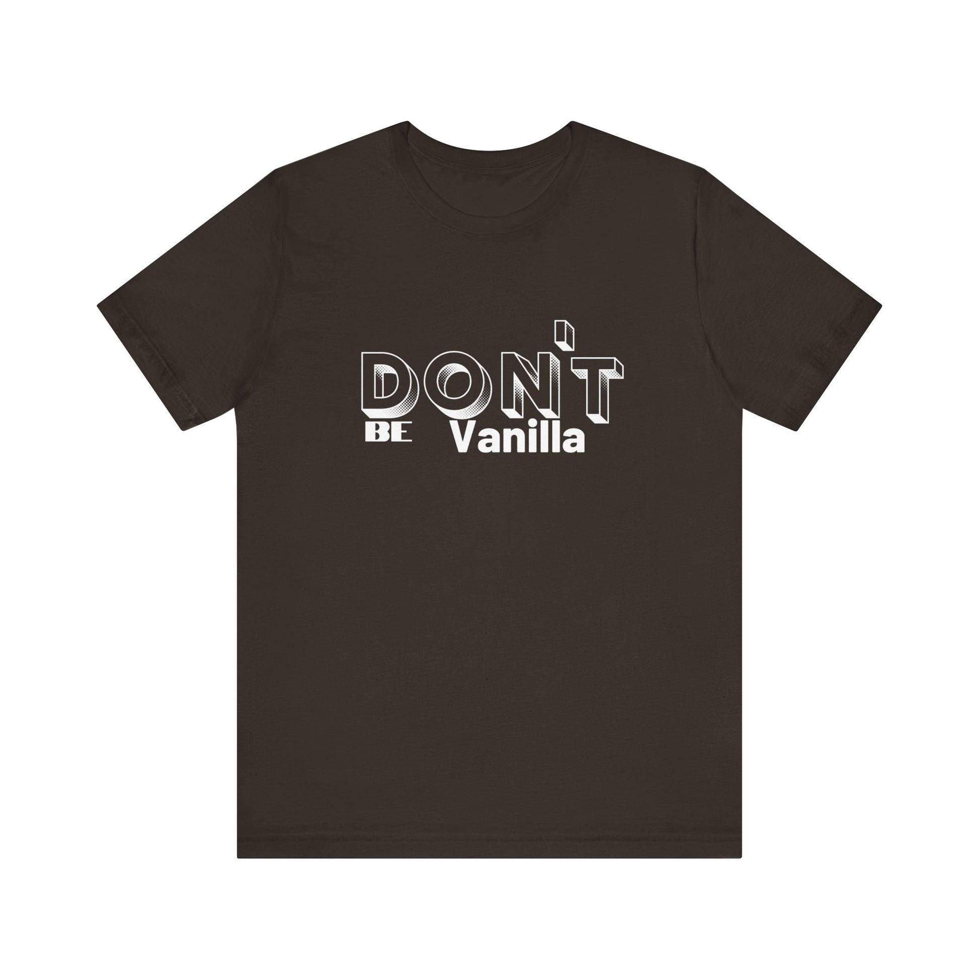 Embrace your individuality with our "Don't be Vanilla" white tee. Let your true self shine with this unique and empowering shirt. Made for those who want to stand out in a world of conformity. Unleash your confidence and be unapologetically YOU.