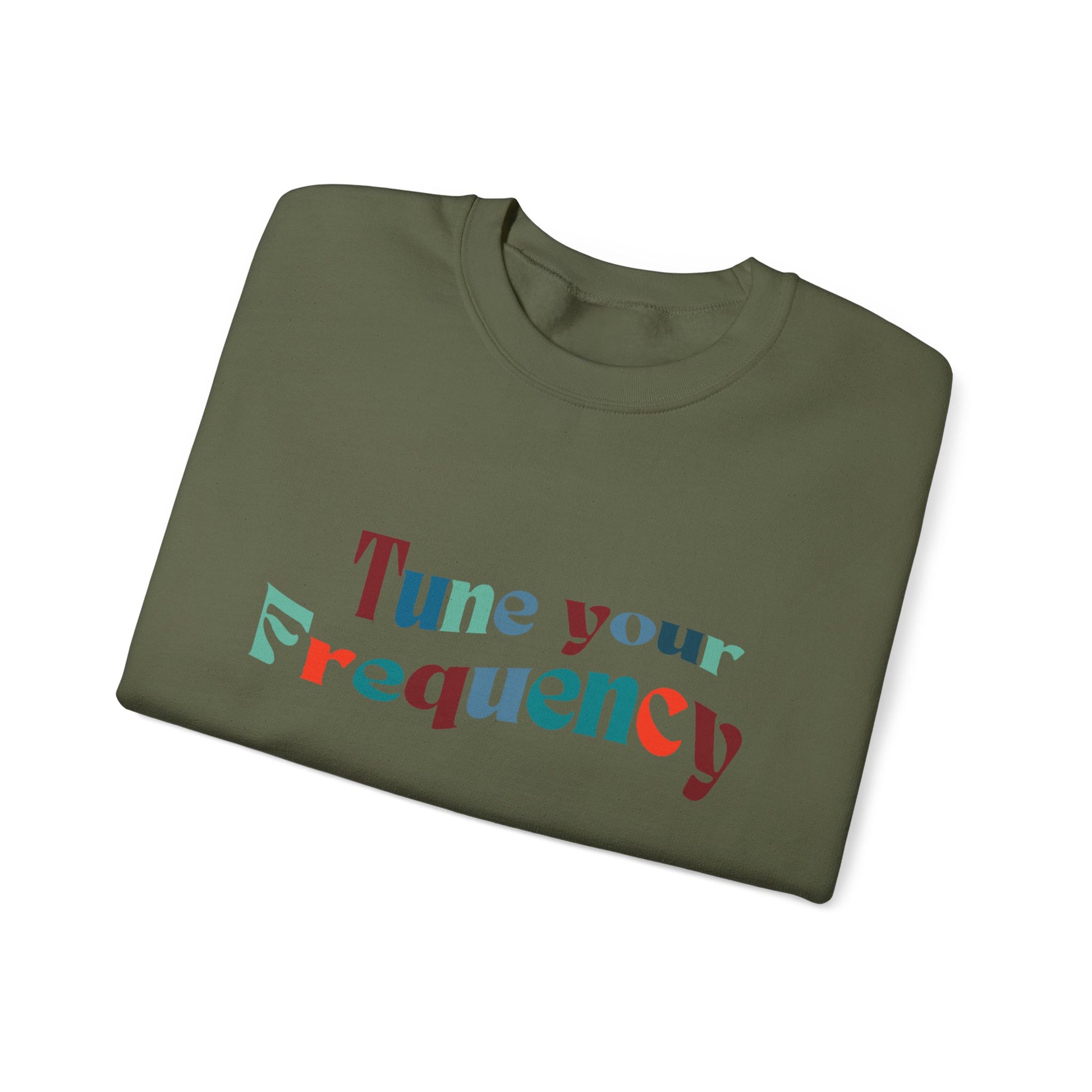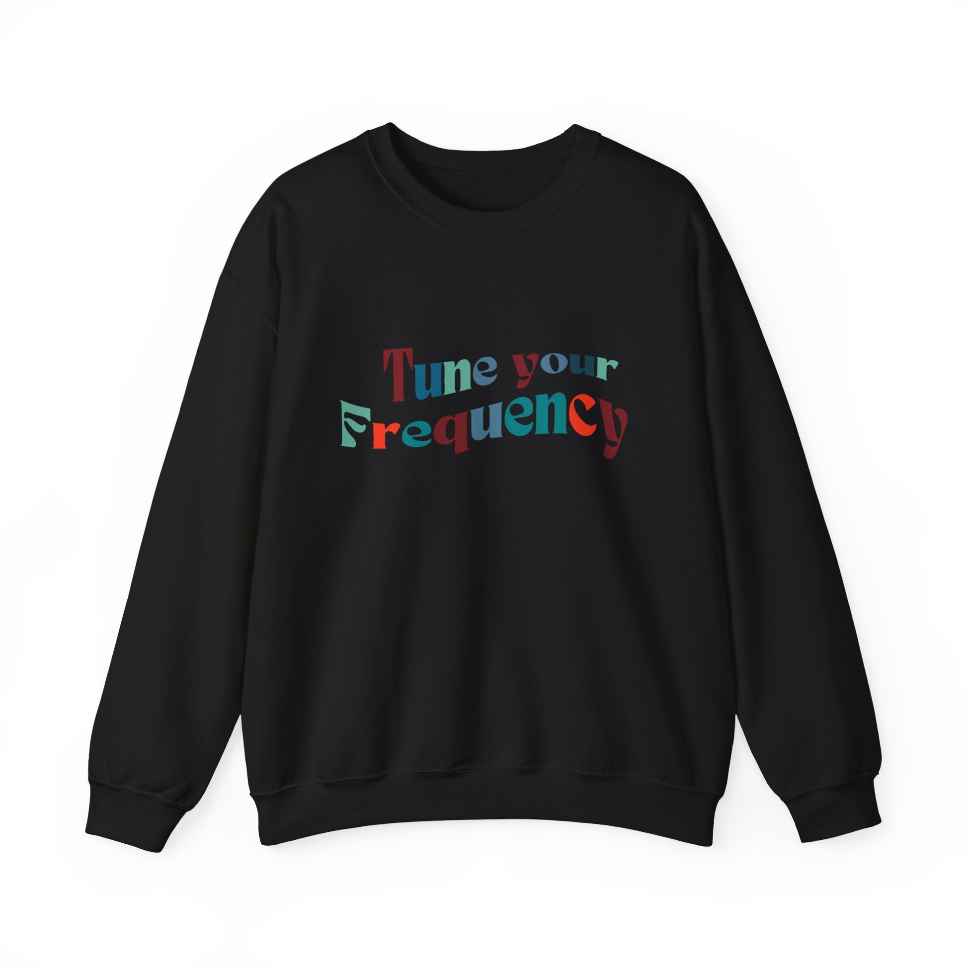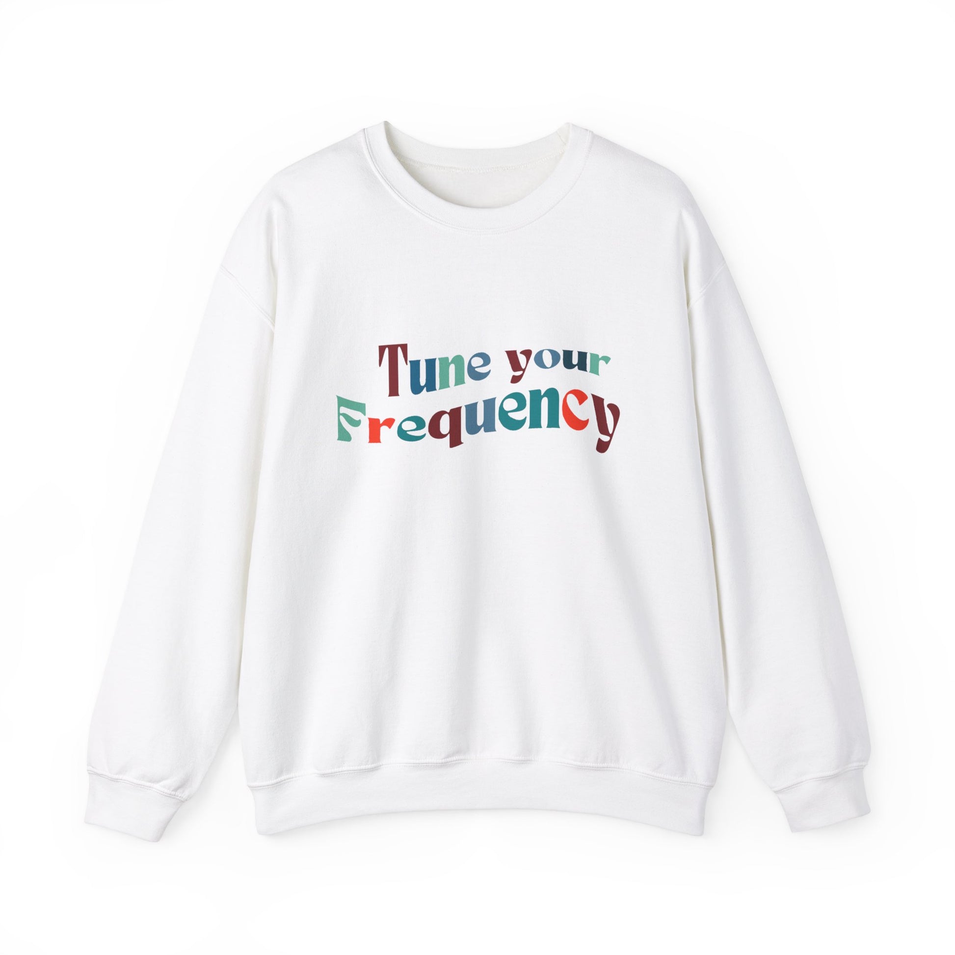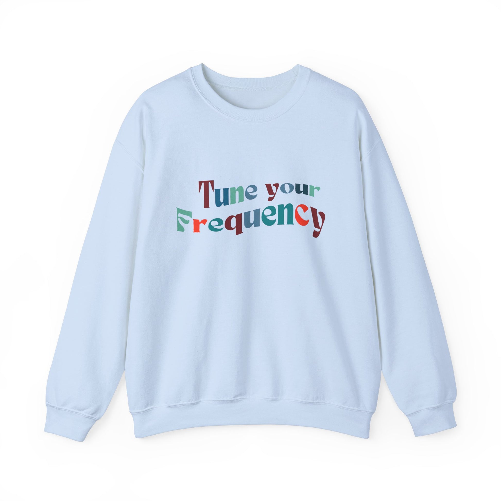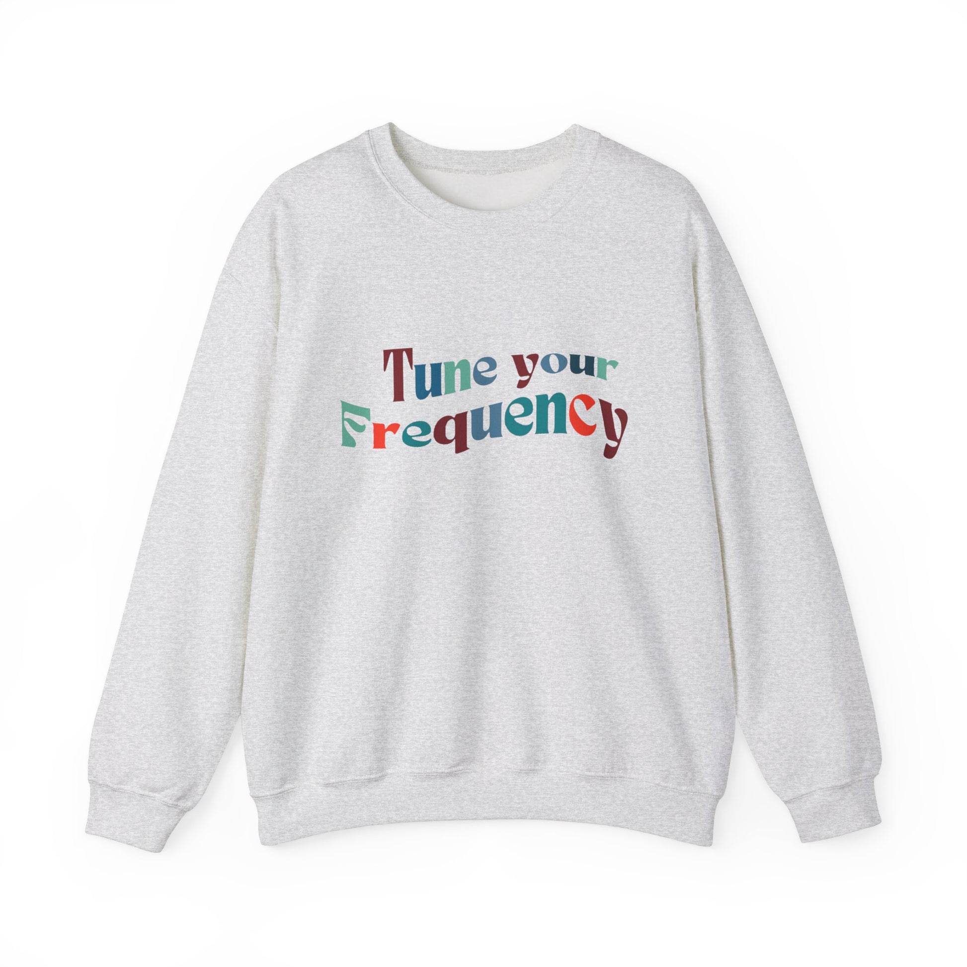 Stay in touch with your inner knowing with this cozy and comfortable crewneck sweatshirt. Tune your frequency for a clear intention on your day with the unique design featuring a message of positivity. Perfect for those colder months, this sweatshirt is made with a medium-heavy fabric blend of 50% cotton and 50% polyester, delivering a clean-cut style and top-tier durability. The ribbed knit collar and double-needle stitching provide a comfy wearing experience, while the gray, pearlized tear-away label ensures no itchiness. Ideal for those seeking to stay warm and positive while making a statement.