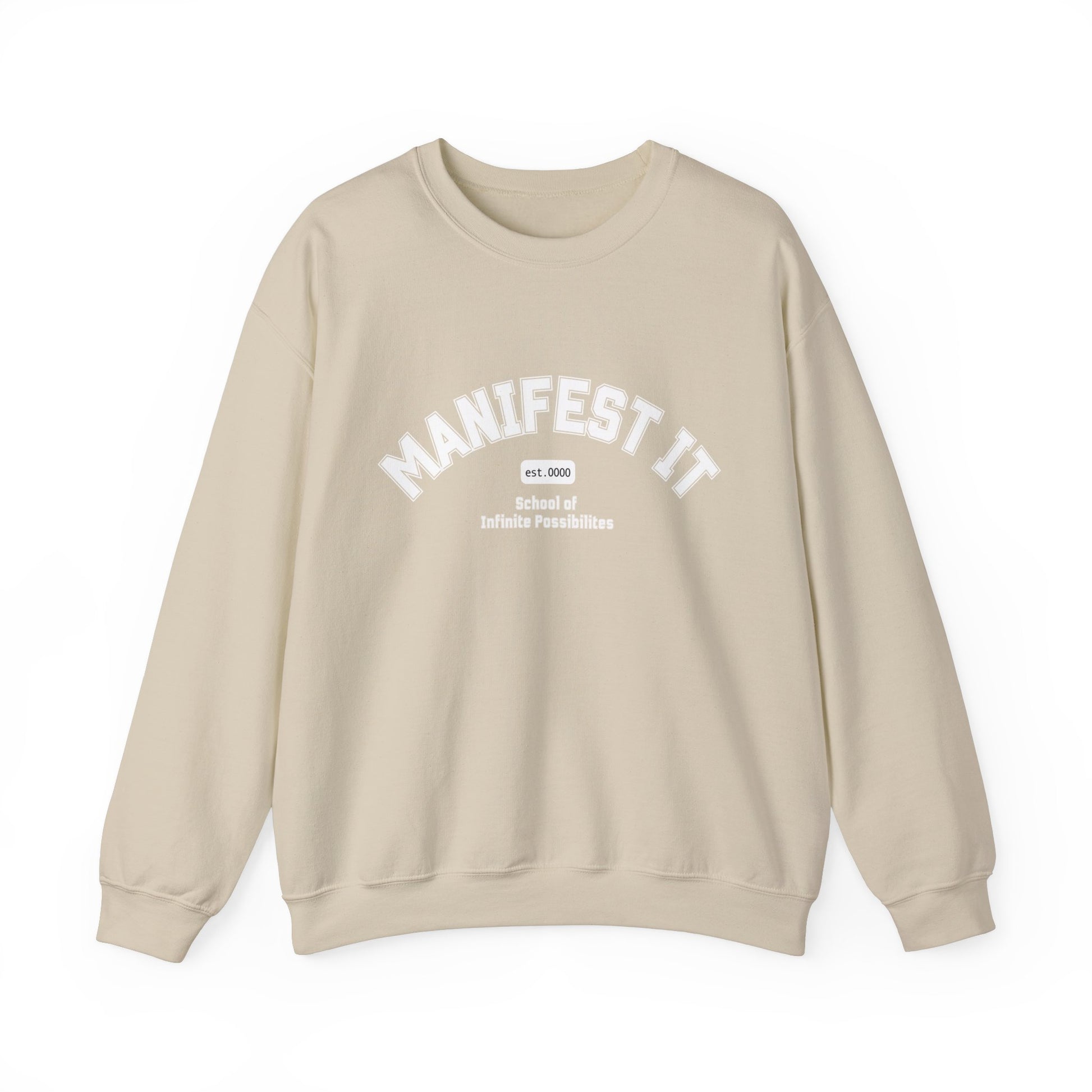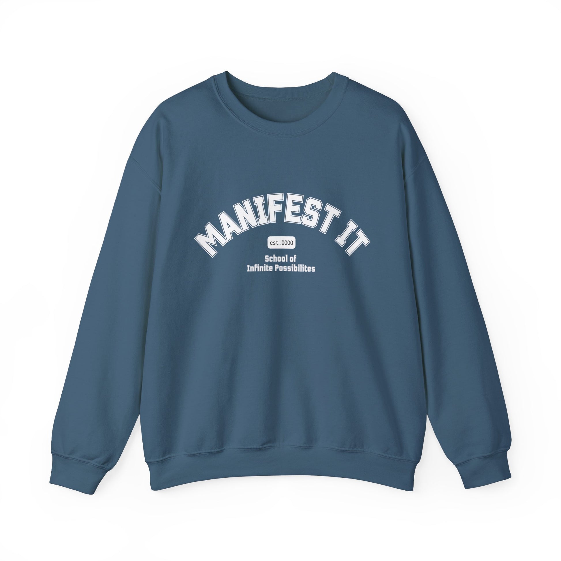The Manifest It sweatshirt is more than just a cozy addition to your wardrobe. With a powerful reminder to manifest your dreams and stay aware of your desires, this sweatshirt from the Manifest It School of infinite possibilities is a supportive companion on your journey to achieving your goals. What are you manifesting today?