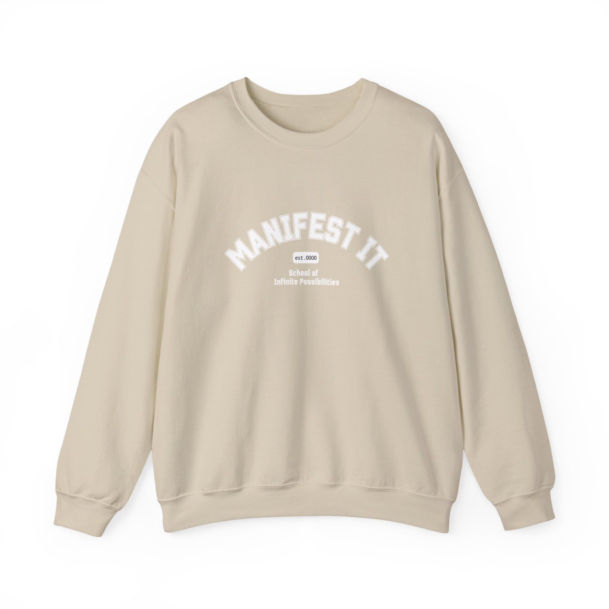 The Manifest It School of Infinite Possibilities sweatshirt transcends everyday wear to become a canvas for intentional self-expression. Layer it with a crisp white blouse and a statement skirt to unlock countless styling possibilities, or wear it solo as a declaration of purpose. This versatile piece invites you to embody the manifestations calling to your spirit, whether you're channeling quiet confidence or bold transformation. Each outfit tells a story of possibility and intention.