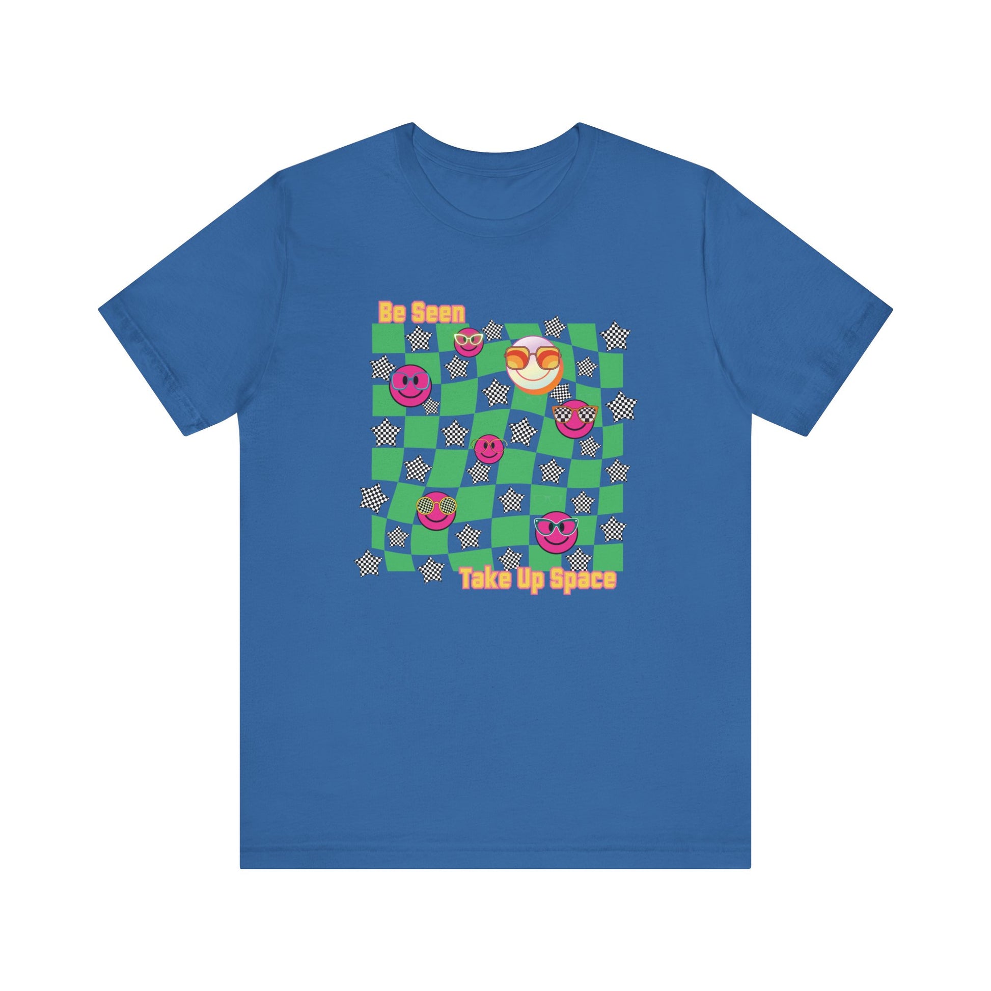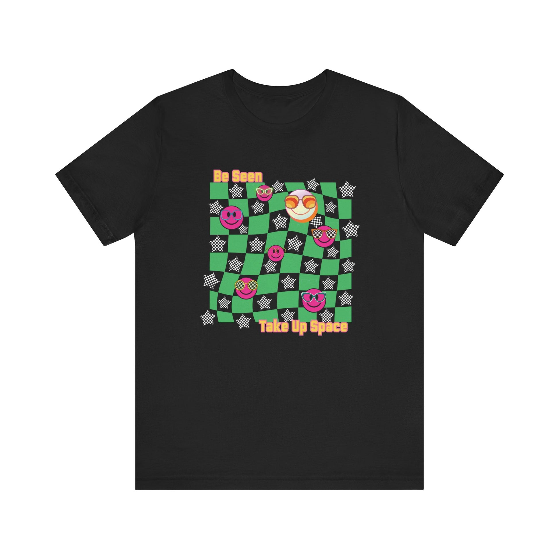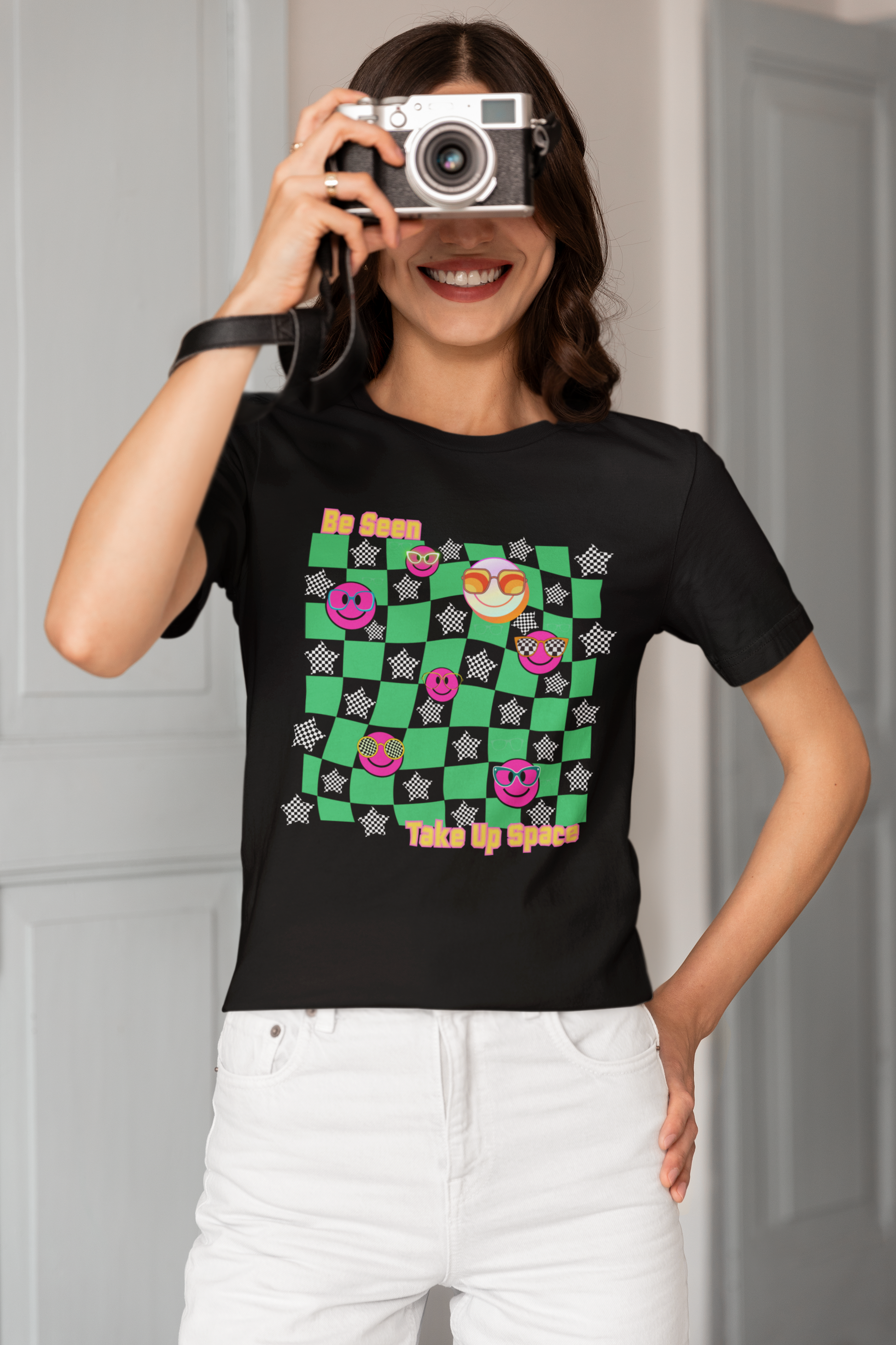 Make your presence known with the "Be Seen Take Up Space" shirt. Bold, fun, and unapologetically bright, this shirt encourages you to express yourself with confidence. Whether it's a smile, a laugh, or a pop of color, wear it loud and proud—because standing out has never looked this good.