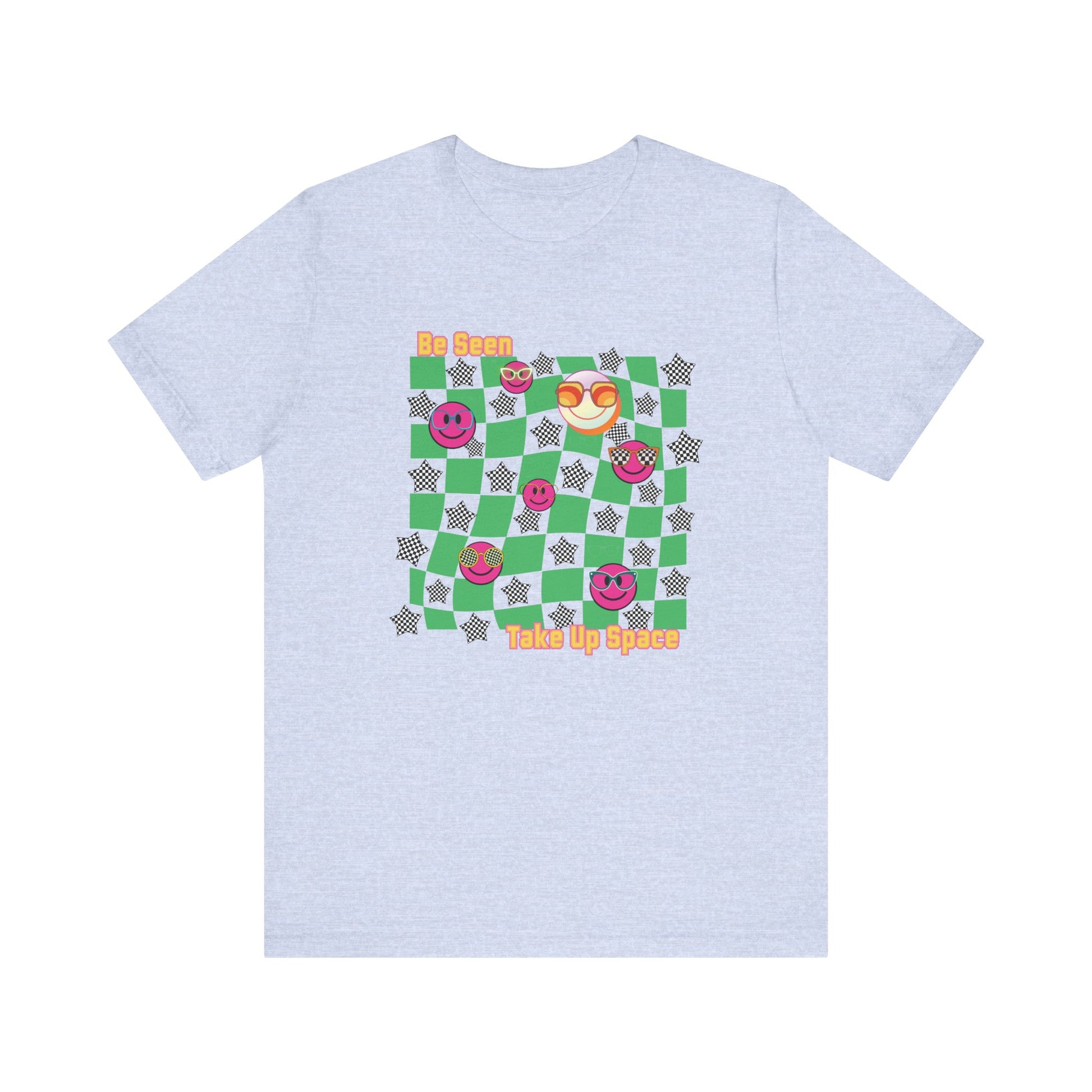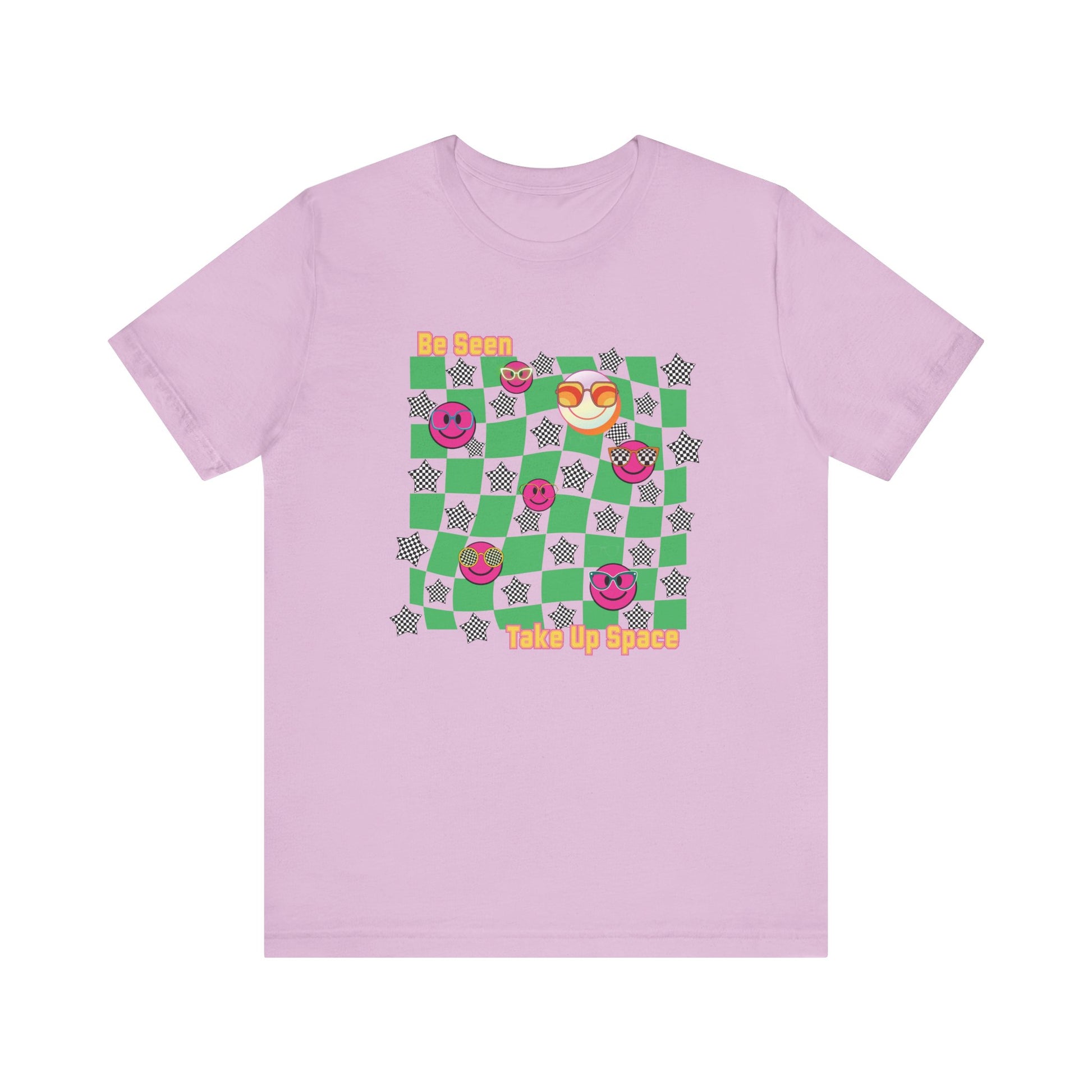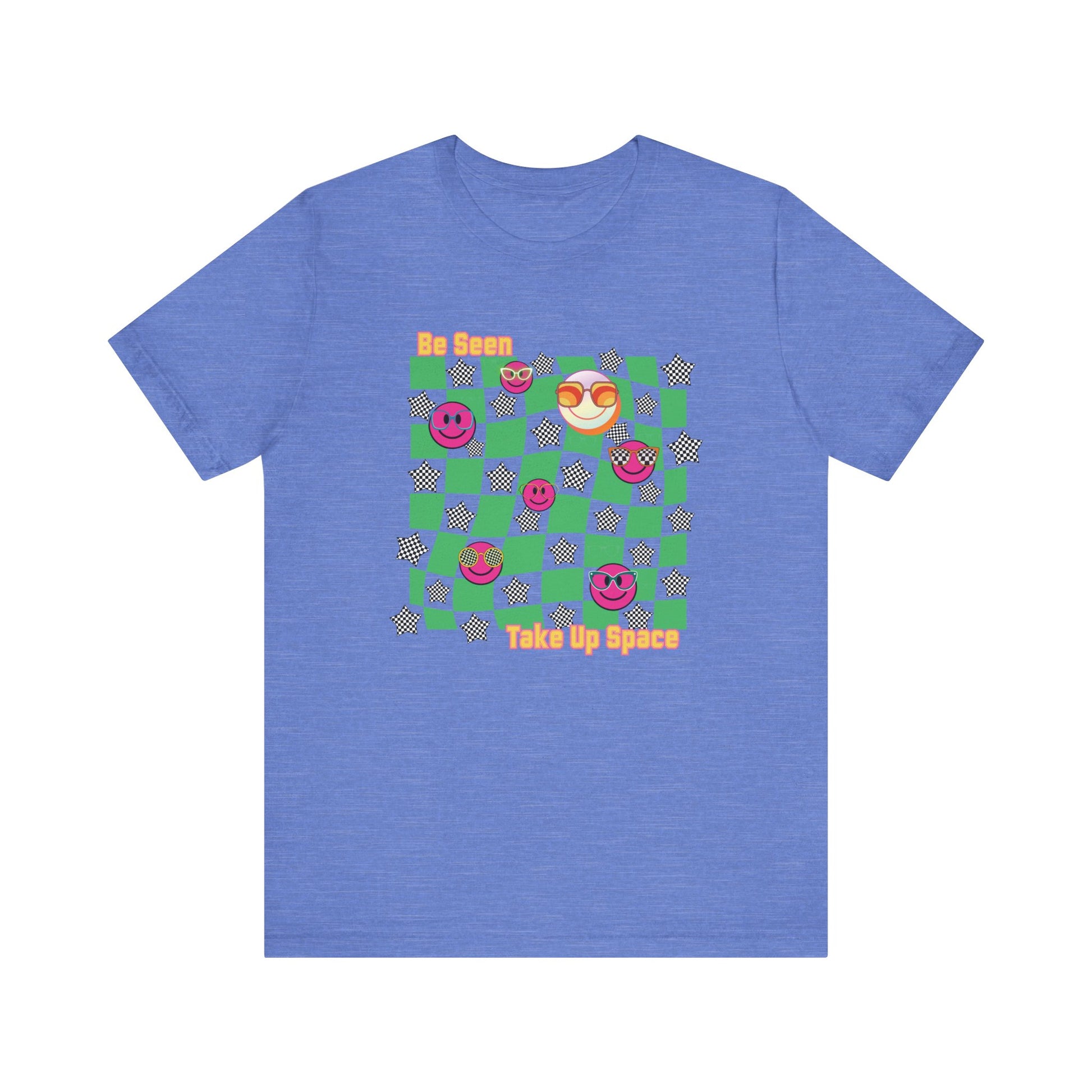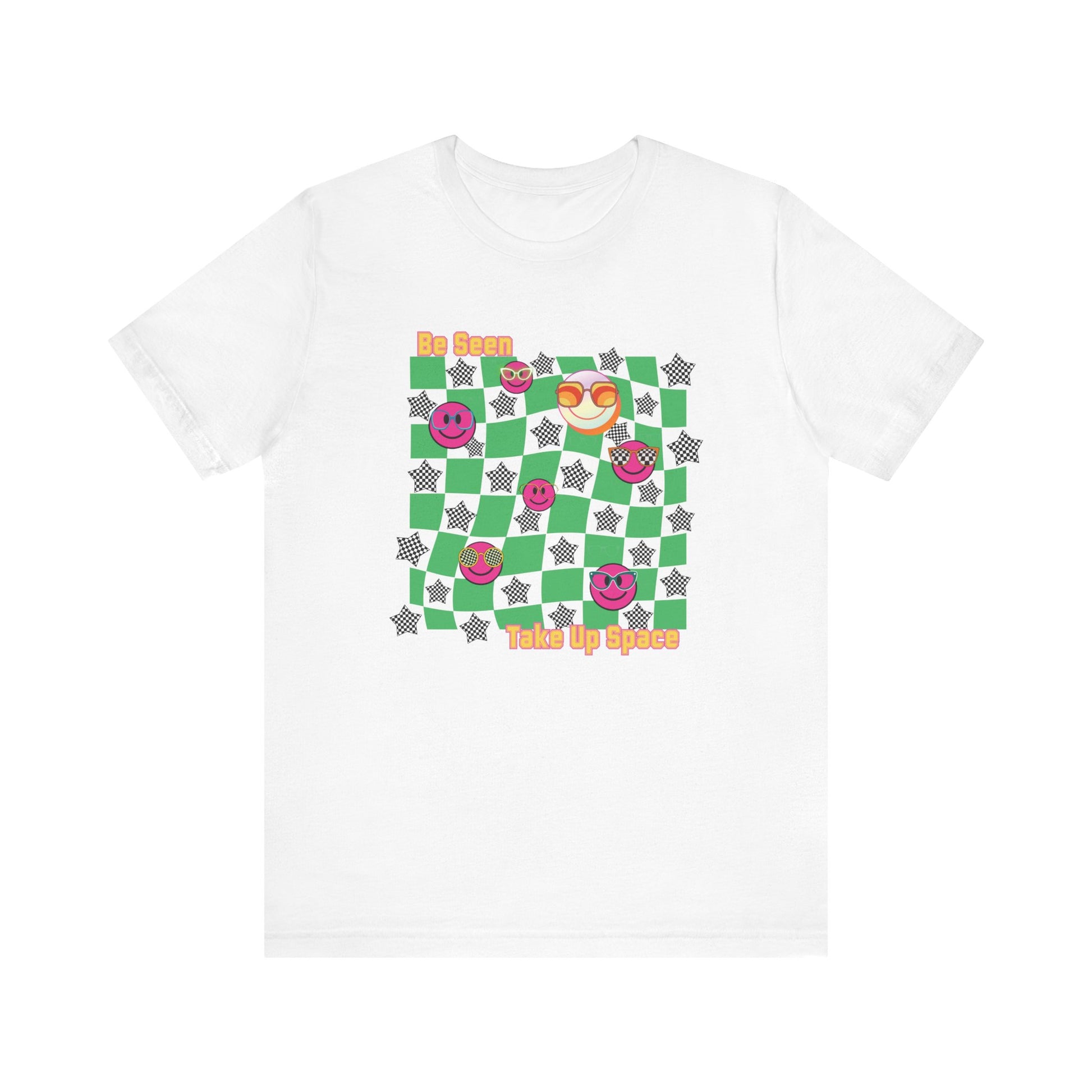 Make your presence known with the "Be Seen Take Up Space" shirt. Bold, fun, and unapologetically bright, this shirt encourages you to express yourself with confidence. Whether it's a smile, a laugh, or a pop of color, wear it loud and proud—because standing out has never looked this good.