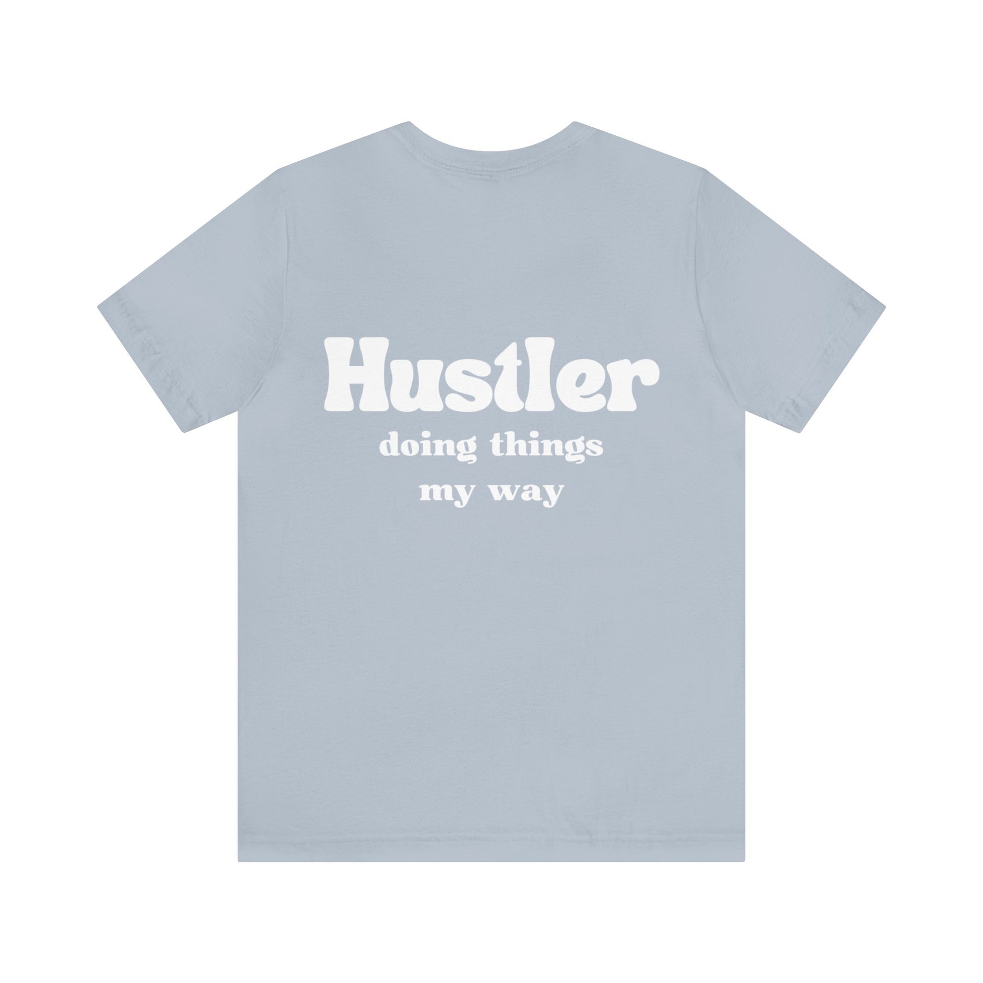 The Hustler Tee celebrates and encourages hustlers everywhere to go after their dreams and make things happen. Don’t wait for opportunities; hustle for them now! The only limits are those you set for yourself. Put some hustle in your step and do it your way!